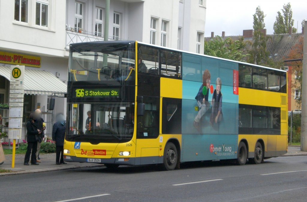 MAN Lion's City DD (Doppelstock) auf der Linie 156 nach Weißensee Pasedagplatz am S-Bahnhof Prenzlauer Allee.