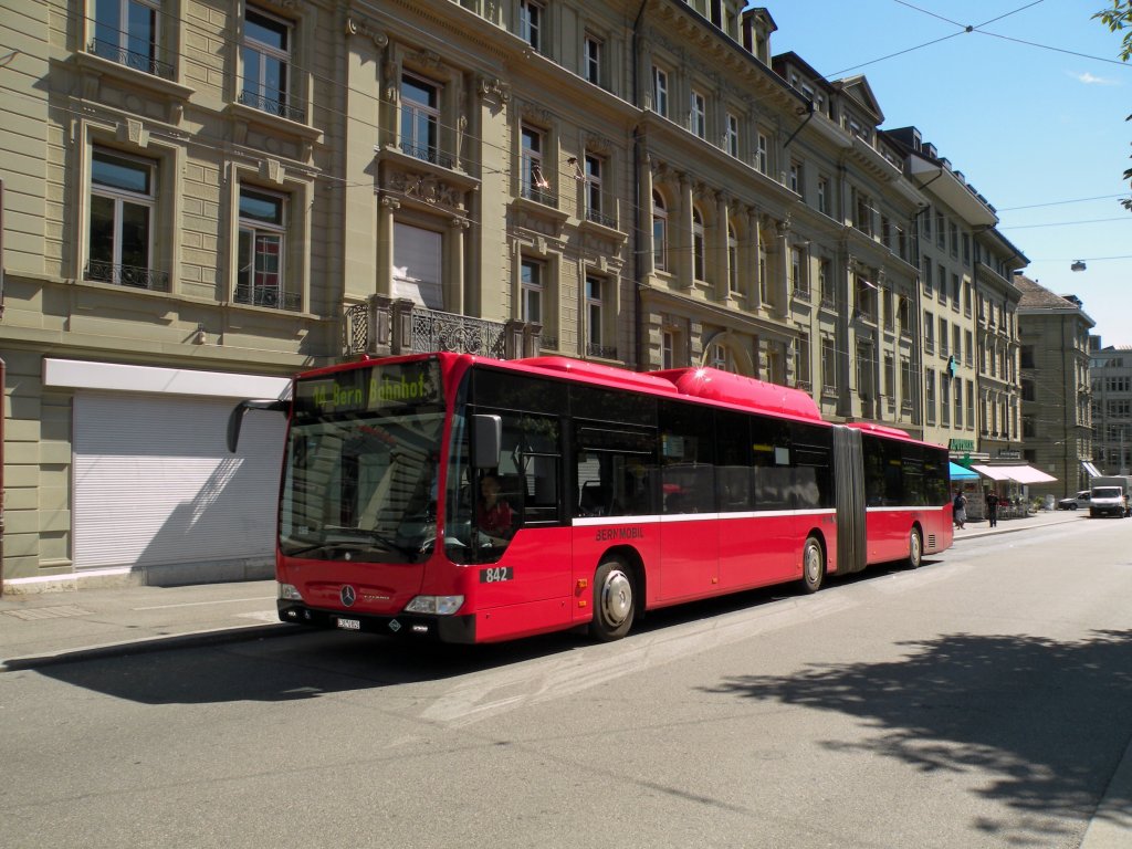Mercedes Citaro mit der Betriebsnummer 842 auf der Linie 14 beim Bubenbergplatz in Bern. Die Aufnahme stammt vom 26.08.2010.