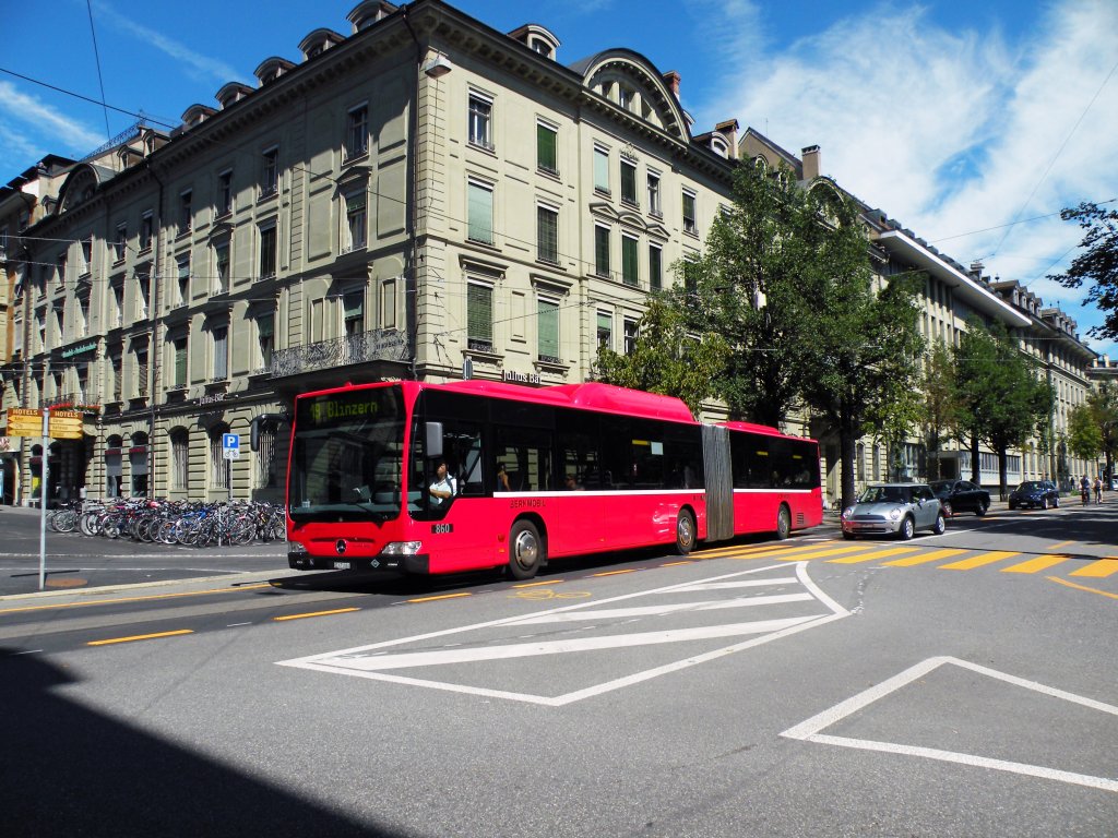 Mercedes Citaro mit der Betriebsnummer 851 auf der Linie 12 beim Bubenbergplatz in Bern. Die Aufnahme stammt vom 26.08.2010.
