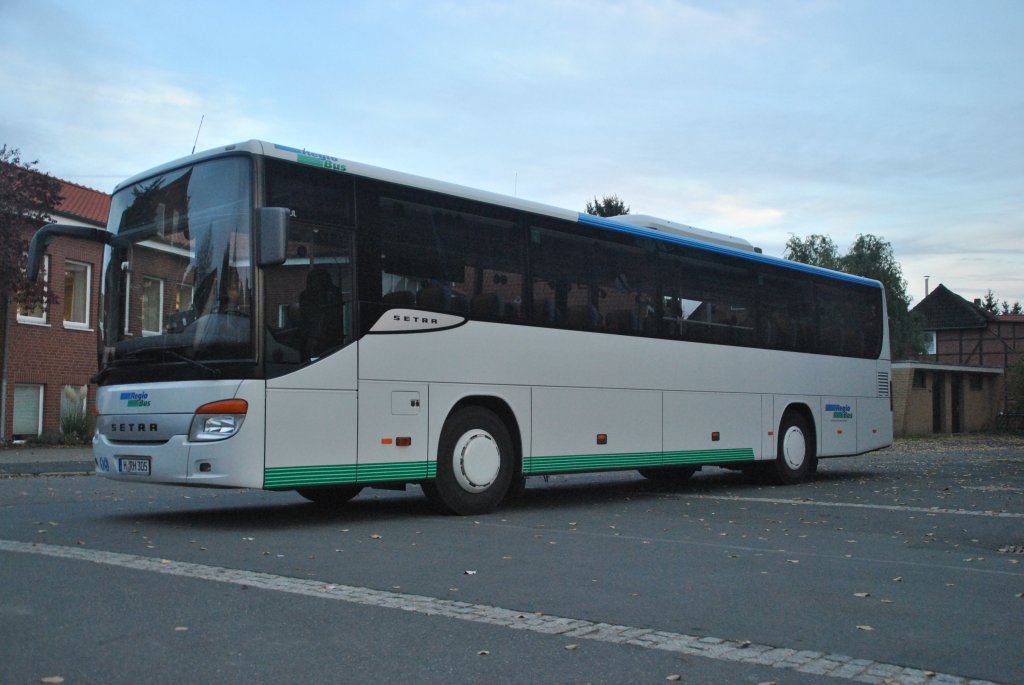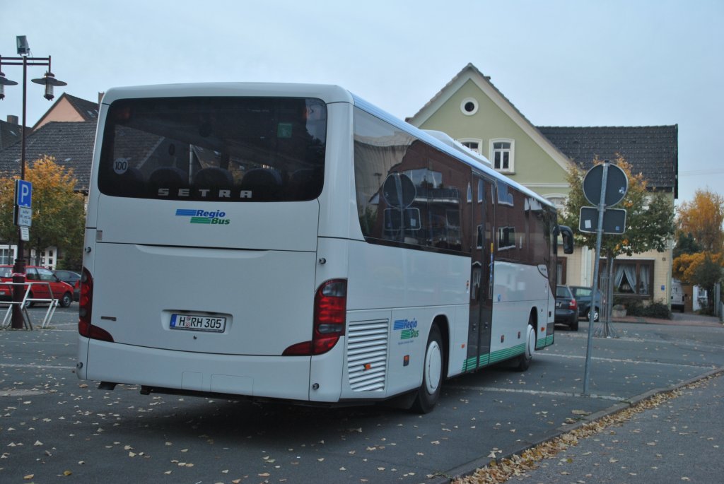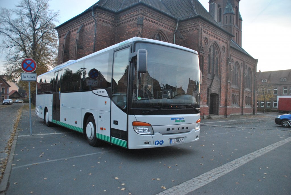 Setra 415 UL, (Fahrgastseite), stand am 29.10.2010 am Marktplatz in Lehrte.