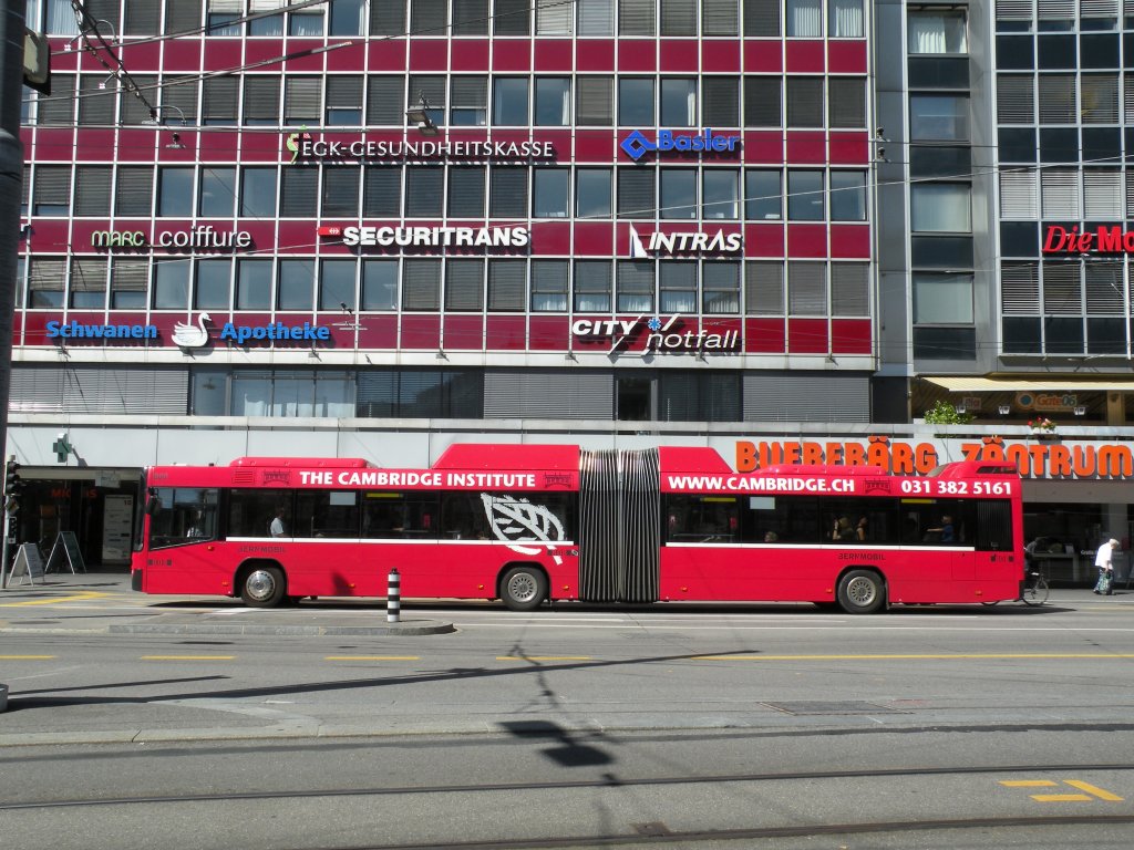 Mercedes Citaro mit der Betriebsnummer 856 und der Vollwerbung für Erdgas und Biogas beim Bubenbergplatz in Bern. Die Aufnahme stammt vom 26.08.2010