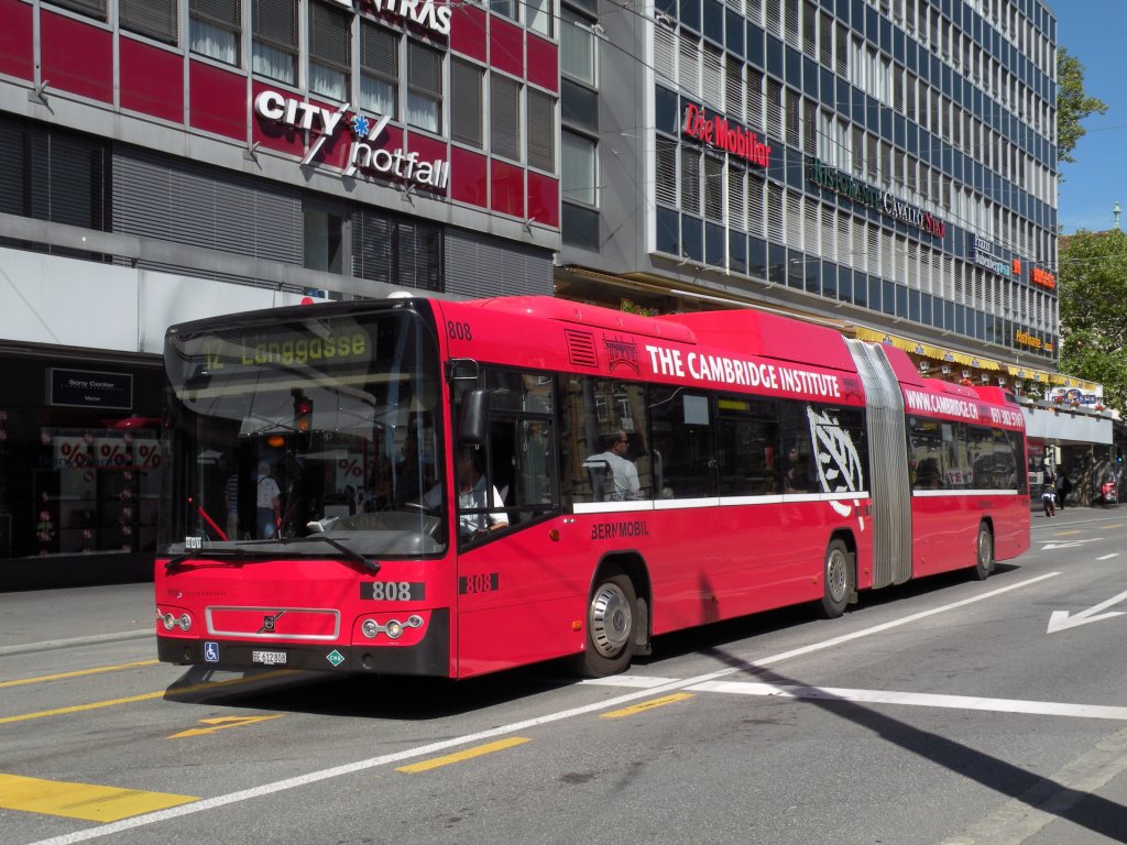 Volvo Bus mit der Betriebsnummer 808 auf der Linie 12 am Bahnhof Bern. Die Aufnahme stammt vom 26.08.2010.