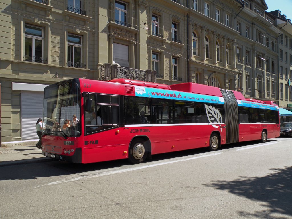 Volvo Bus mit der Betriebsnummer 827 auf der Linie 17 beim Bubenbergplatz. Die Aufnahme stammt vom 26.08.2010.