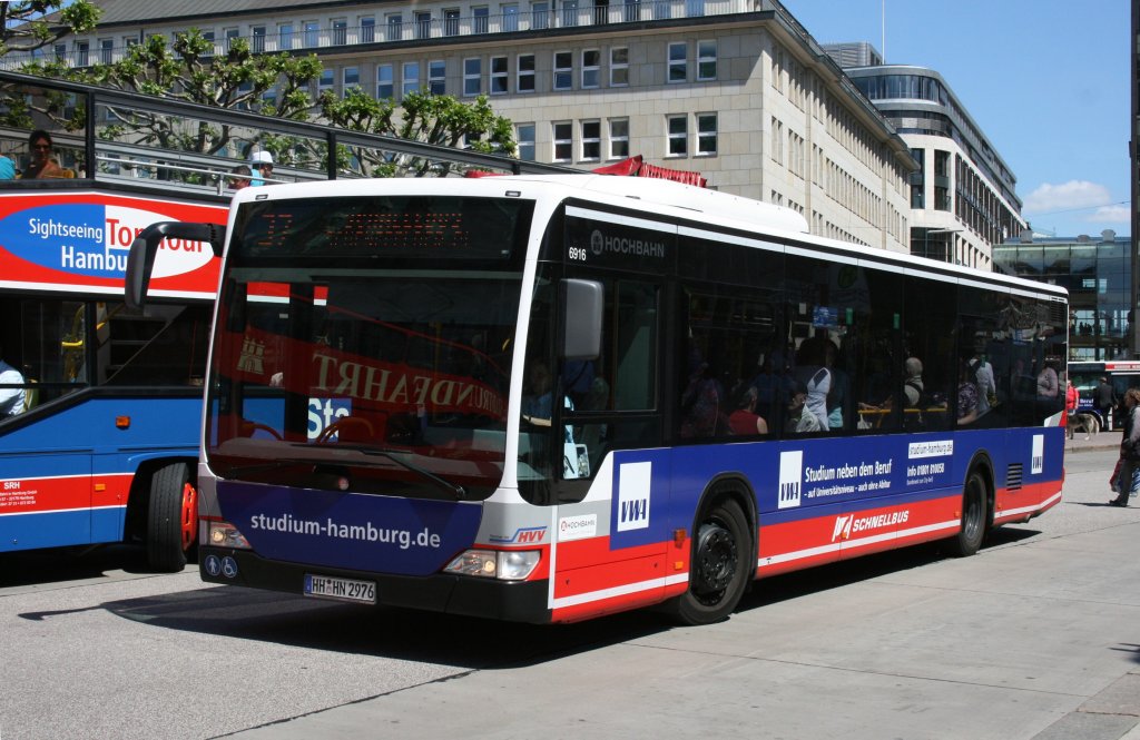 Hochbahn 6916 (HH HN 2976) macht Werbung für VWA.