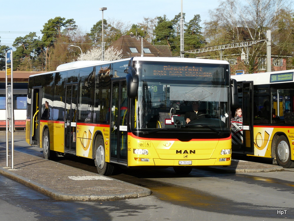 Postauto - MAN ZH 780686 bei den Bushaltestellen beim Bahnhof in Bülach am 01.04.2011