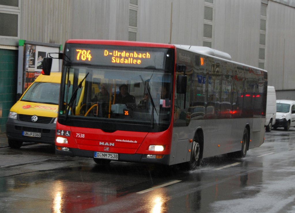 Rheinbahn 7538, ein MAN Lions City, aufgenommen am 27.02.2011 in Wuppertal Vohwinkel während der Rundfahrt durchs Oberbergische Land.