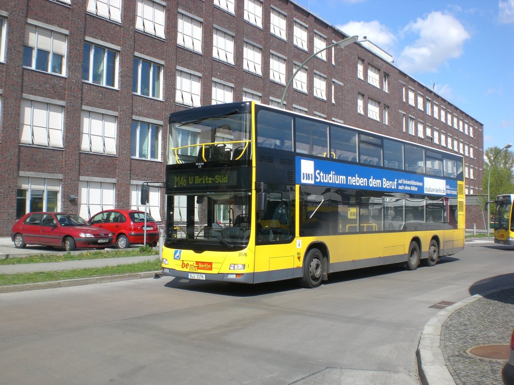 MAN Lion's City DD (Doppelstock) auf der Linie M46 nach U-Bahnhof Britz-Süd an der Haltestelle Hertzallee.