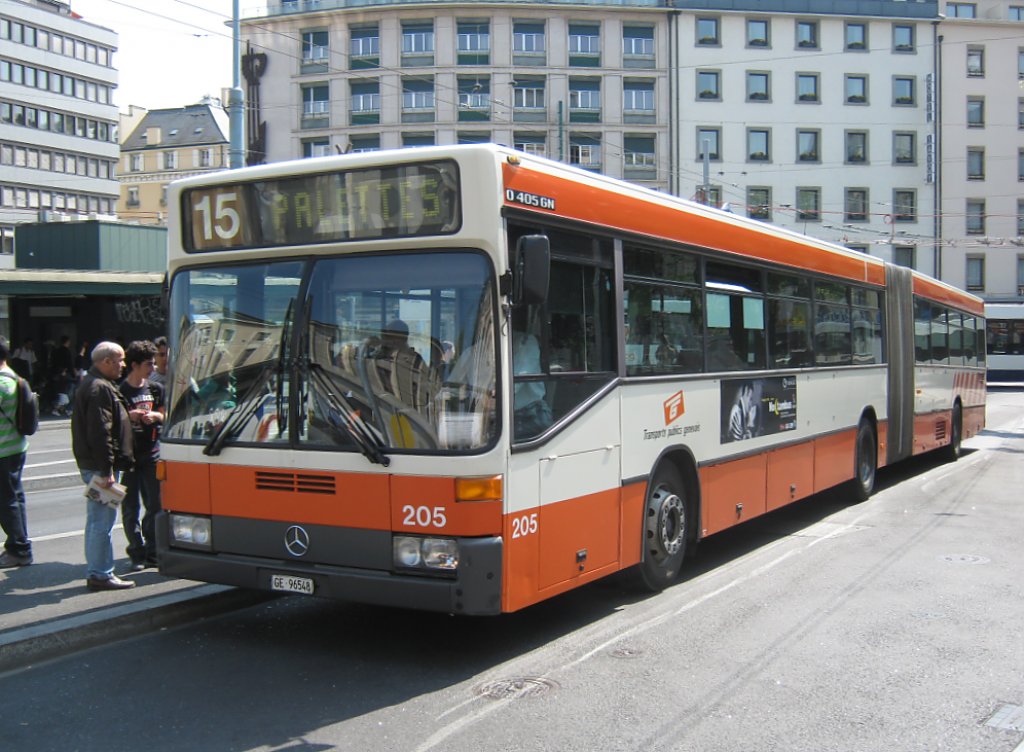 MB 405 GN Nr. 205 auf der Linie 15 (Tramersatz) bei der Haltestelle Gare Cornavin, 20.04.2011.