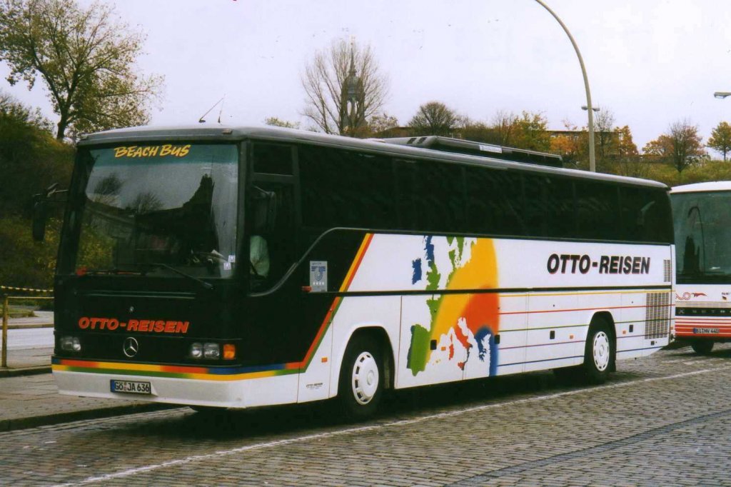 Mercedes O340 RHD, aufgenommen im November 2002 in Hamburg an den Landungbrücken.