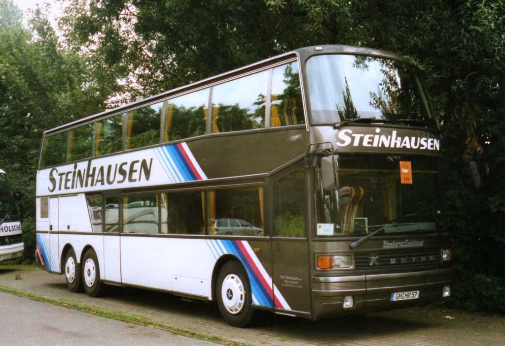 Setra S328 DT, aufgenommen im August 1998 auf dem Parkplatz der Westfalenhallen in Dortmund.