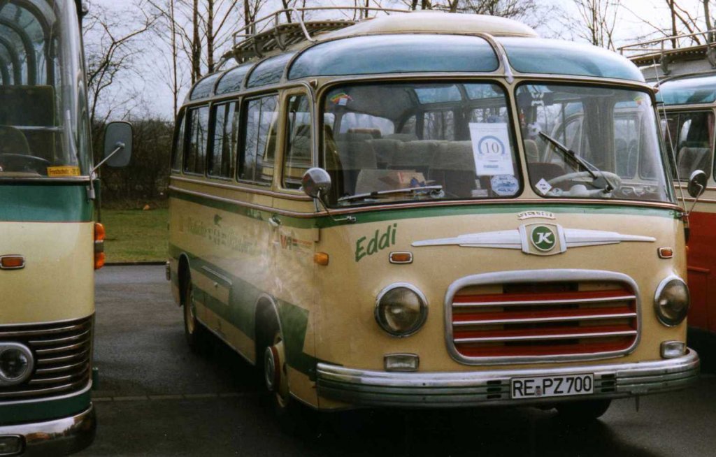 Setra S211 HD, aufgenommen im März 2000 auf dem Parkplatz der Westfalenhallen in Dortmund.