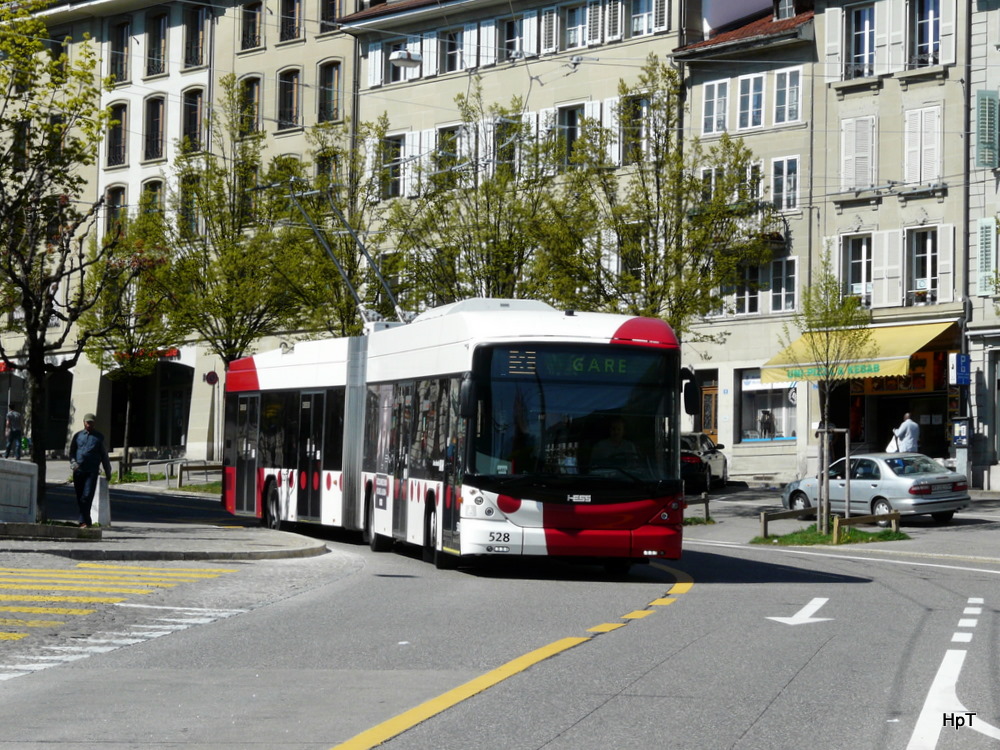 tpf - Hess-Swisstrolleybus Nr.528 unterwegs in der Stadt Fribourg am 09.04.2011