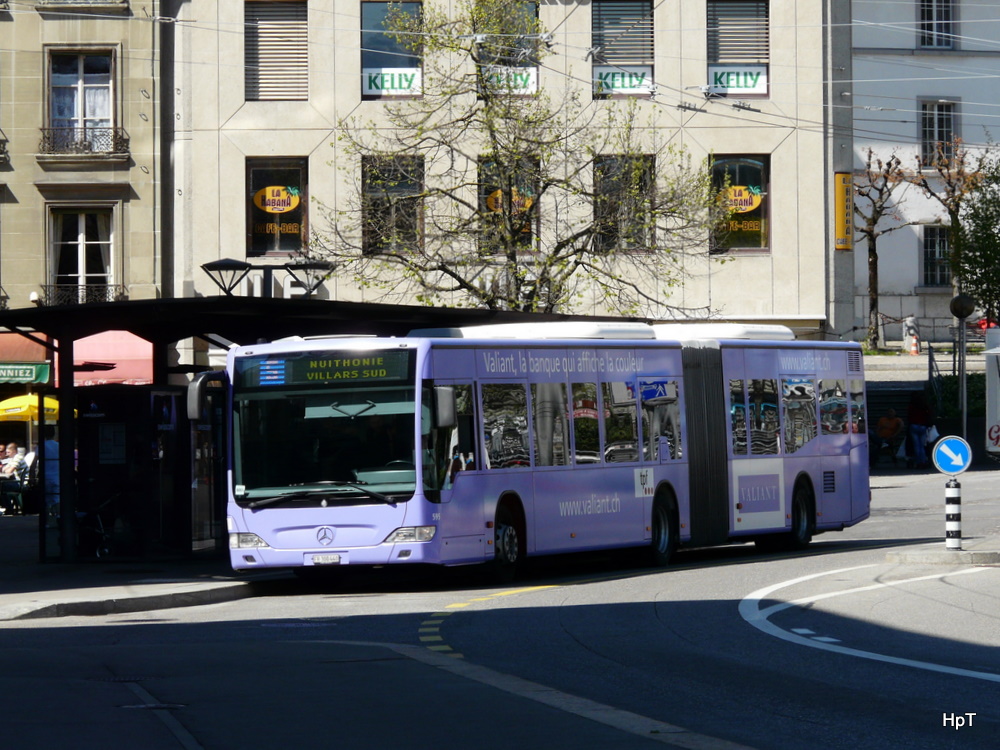 tpf - Mercedes Citaro Nr.388 FR 300393 unterwegs in der Stadt Fribourg bei den Haltestellen vor dem Bahnhof am 09.04.2011