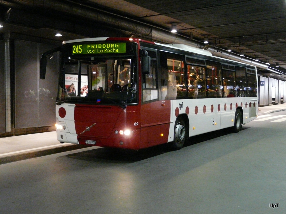 tpf - Volvo 8700 Nr.89 FR 300322 in den Unterirdischen Bushaltestellen im Bahnhof Fribourg am 09.04.2011