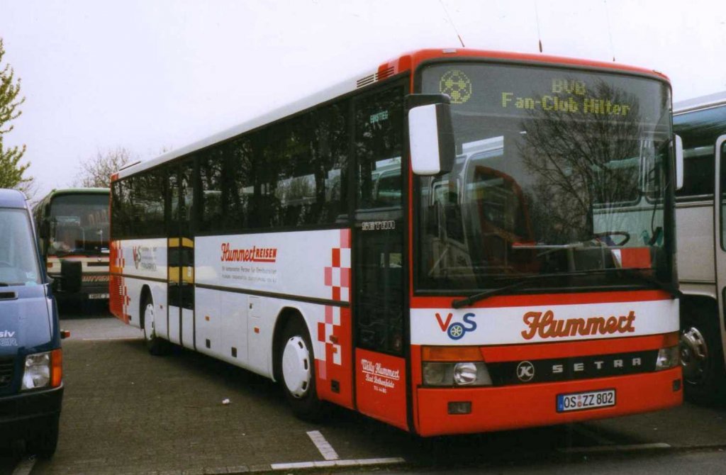Setra S215 UL, aufgenommen im April 1999 auf dem Parkplatz der Westfalenhallen in Dortmund.