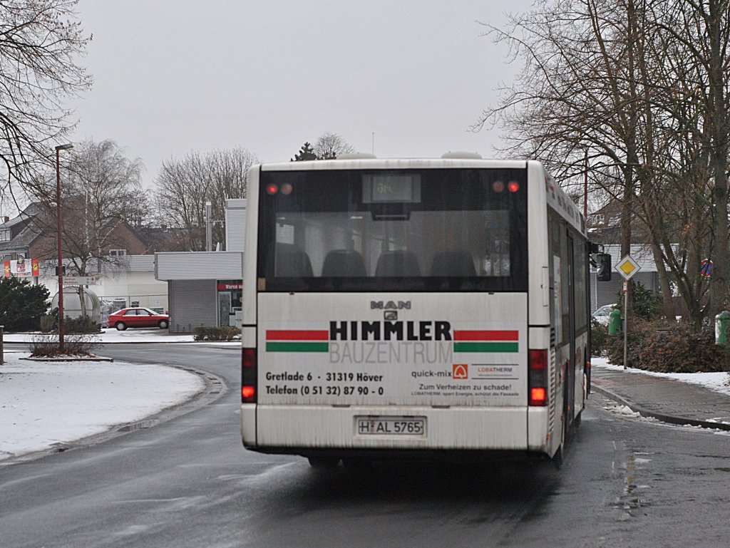MAN NL, macht Werbung für "Himmler Baustoffe" in Höver. Der Bus war auf Betriebsfahrt in alten Dorf in Lehrte am 02.02.2011.