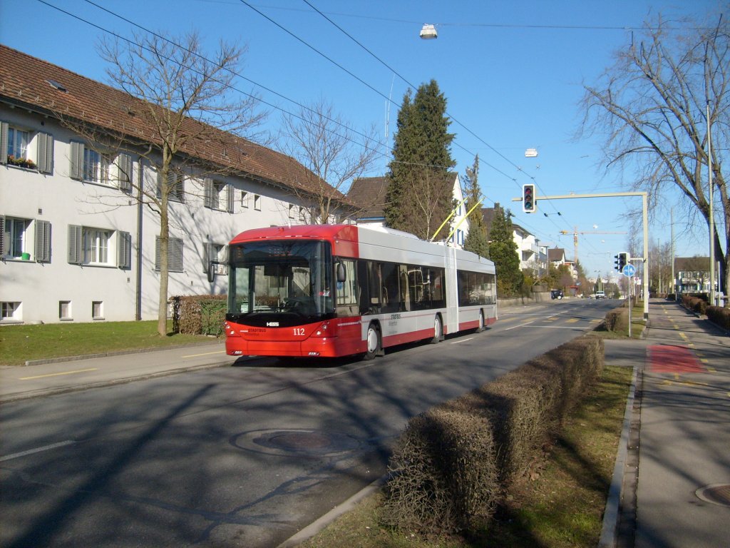 Mehr als die Hälfte der "Neuen" sind bereits in Betrieb. Swisstrolley 112 am 6. Feb. 2011 beim Schulhaus Guggenbühl.