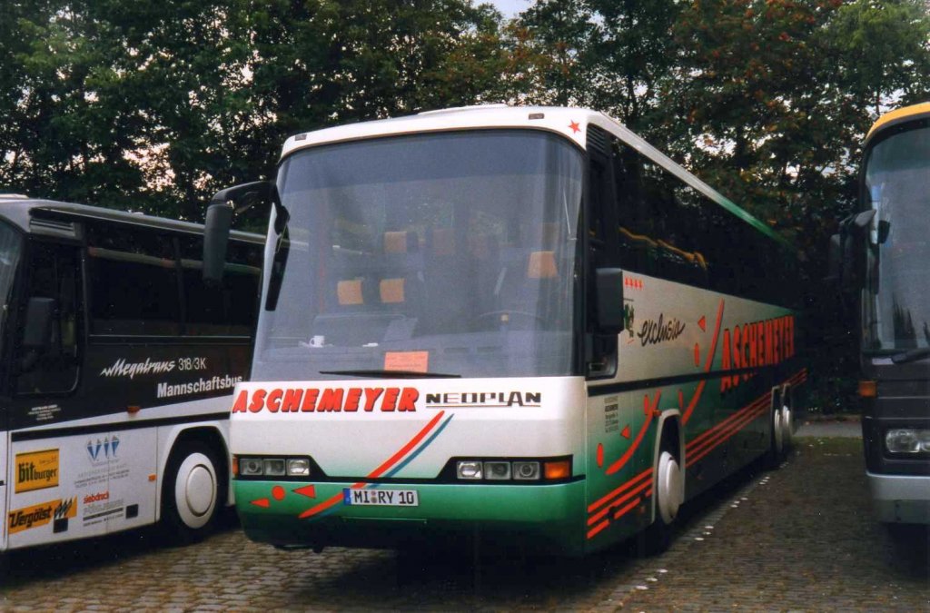 Neoplan Transliner N318 SHDL/3, aufgenommen im August 1998 auf dem Parkplatz der Westfalenhallen in Dortmund.