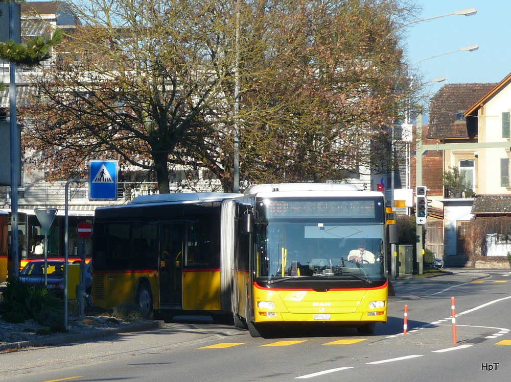 Postauto - MAN Lion`s City BE 656301 beim Wegfahren von den Bushaltestellen bei der Post in Aarberg am 16.01.2011