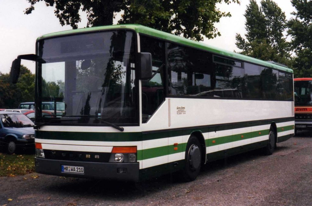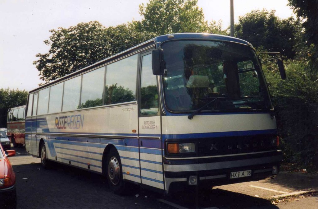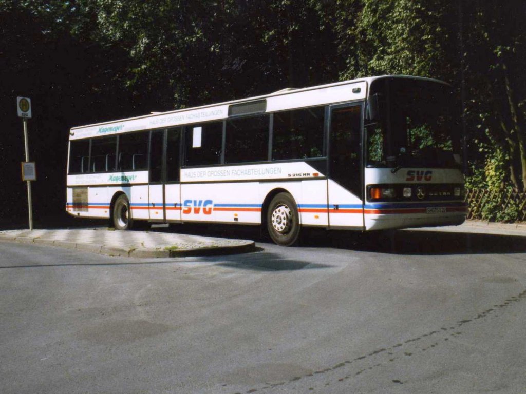 Setra S215 HR, aufgenommen im September 1994 auf dem Parkplatz der Westfalenhallen in Dortmund.