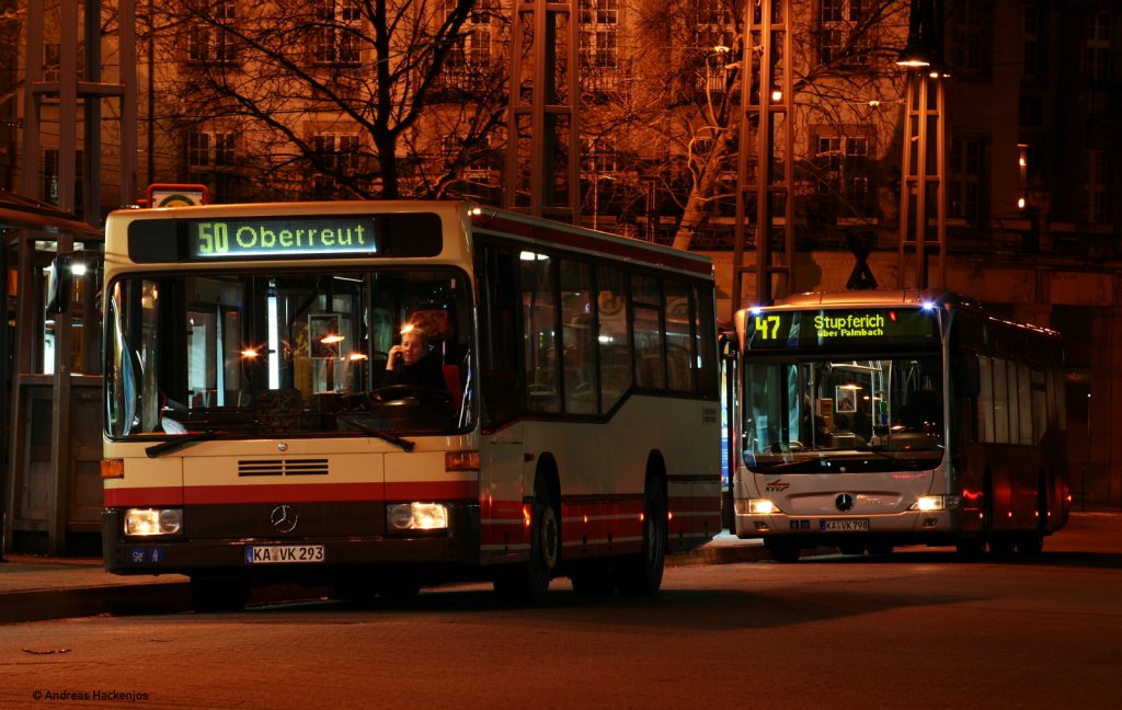 Ein älterer Mercedes Benz des RNV in Heidelberg Hbf am 11.02.11