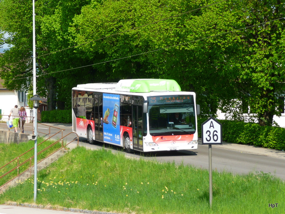 BGU - Schnappschuss des Gas Mercedes Citaro Nr.27 SO 39937 bei der zufahrt zum Bahnhof Grenchen Nord am 16.04.2011