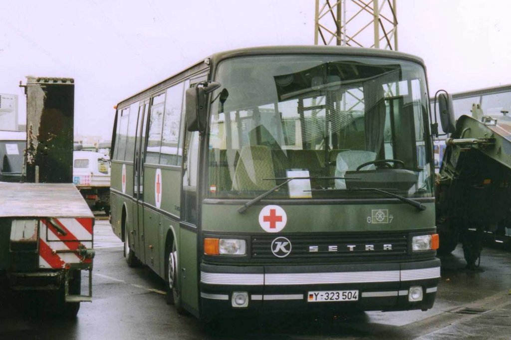Setra S213 UL der Bundeswehr, aufgenommen im Januar 2002 auf dem Gelände der Evobus NL Dortmund.