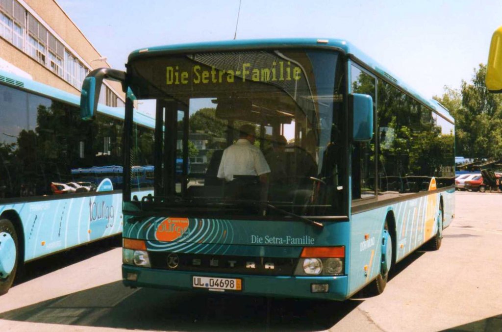 Setra S215 UL, aufgenommen im Mai 2002 im GWZ der Evobus NL Dortmund.