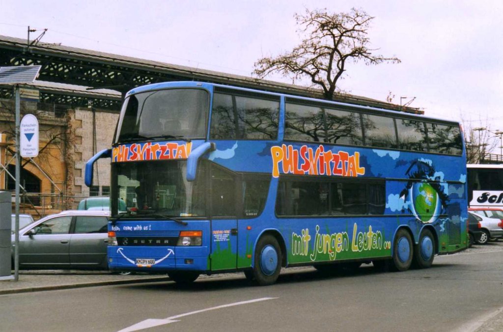 Setra S328 DT, aufgenommen im April 2002 am Bahnhof Zoo in Berlin.