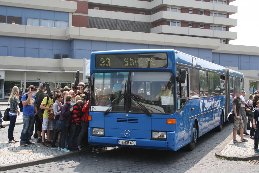 Mercedes 0 405, stand am 22.05.2011 am ZOB in Hildesheim, um gleich sich Schulkindern zufüllen.