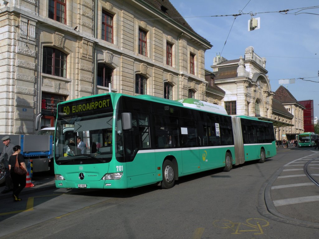 Mercedes Citaro "Luftibus" mit der Betriebsnummer 701 auf der Linie 50 am Bahnhof SBB in Basel. Die Aufnahme stammt vom 10.05.2011.