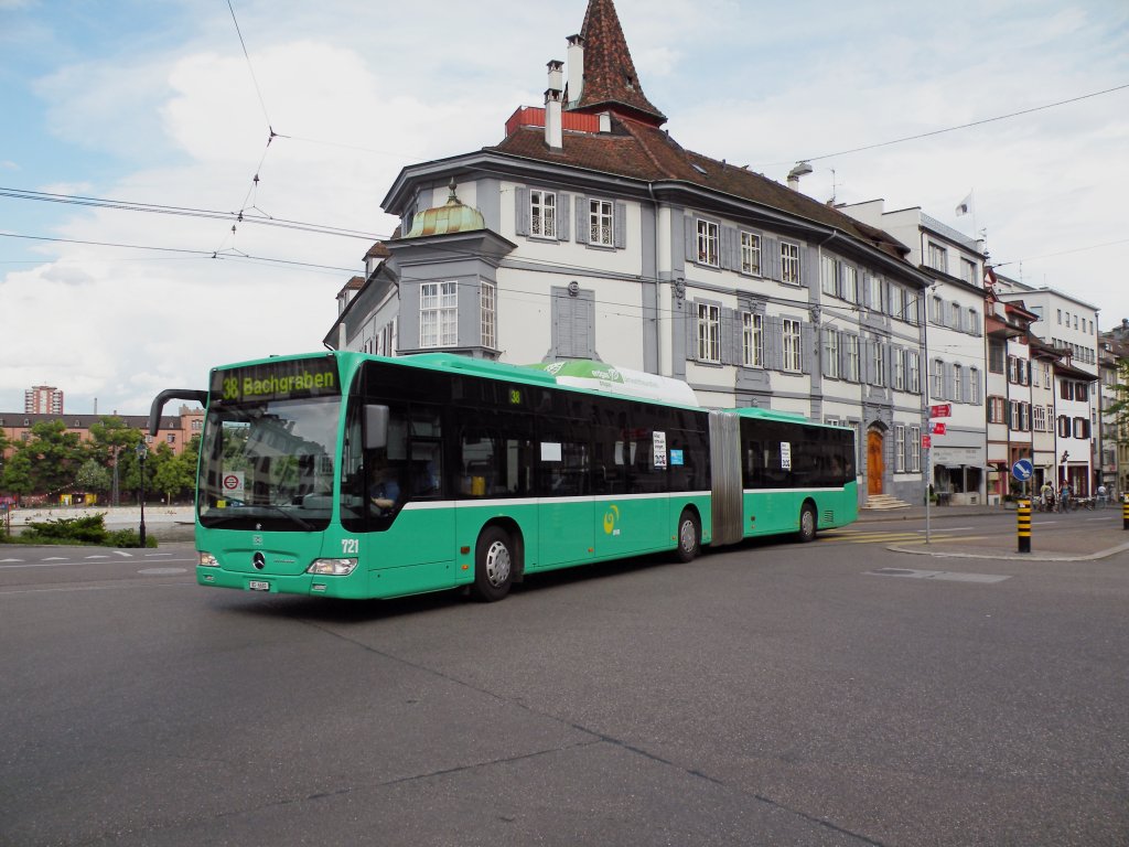 Mercedes Citaro mit der Betriebsnummer 721 auf der Linie 38 beim Universitätsspital in Basel. Die Aufnahme stammt vom 22.05.2011.