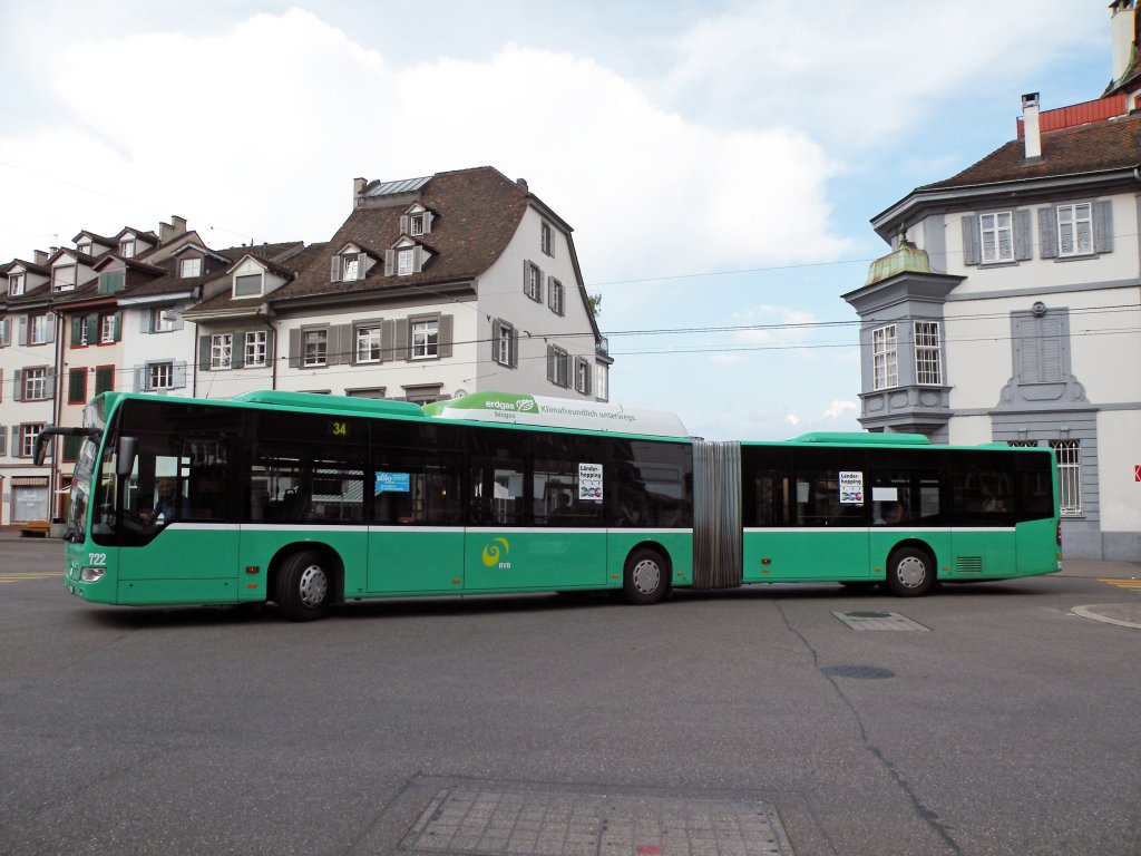 Mercedes Citaro mit der Betriebsnummer 722 auf der Linie 34 beim Universitätsspital in Basel. Die Aufnahme stammt vom 22.05.2011.