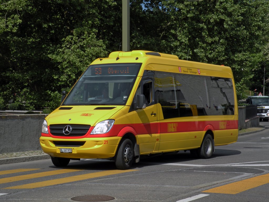 Mercedes Sprinter der BLT mit der Betriebsnummer 21 auf der Linie 59 in Bottmingen. Die Aufnahme stammt vom 09.05.2011.