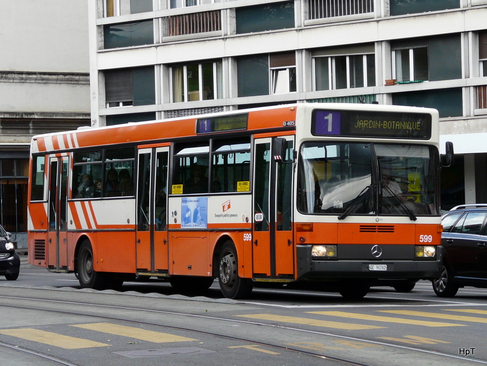 TPG Genf - Mercedes O 405 Nr.599 GE 96262 unterwegs auf der Linie 1 in der City von Genf am 15.05.2011