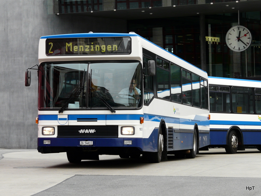 Zugerland - NAW Nr.103 ZG 54613 unterwegs auf der Linie 2 vor dem BAhnhof in Zug am 17.05.2011