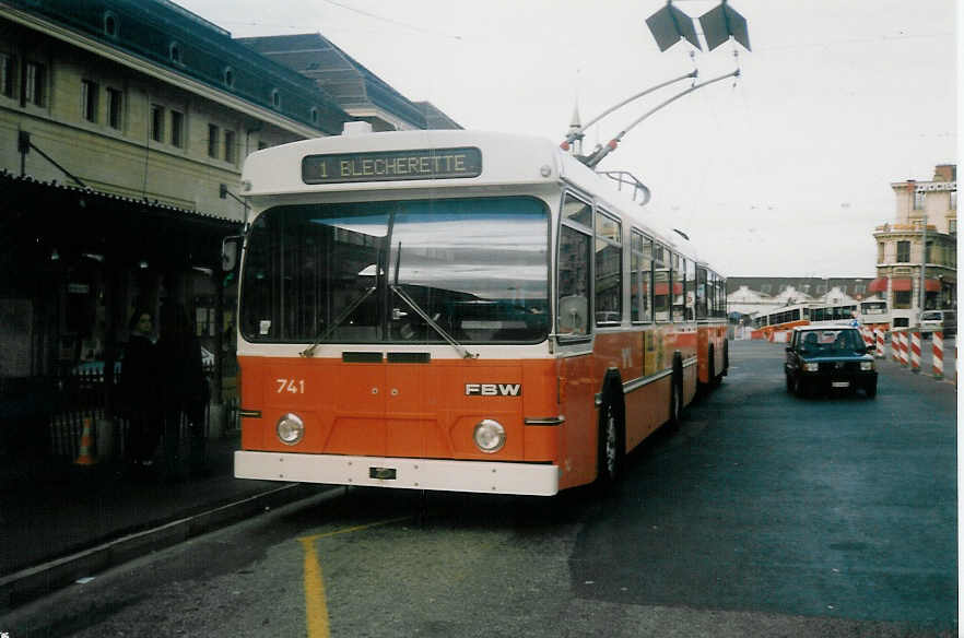 Aus dem Archiv: TL Lausanne - Nr. 741 - FBW/Hess Trolleybus am 7. März 1998 beim Bahnhof Lausanne