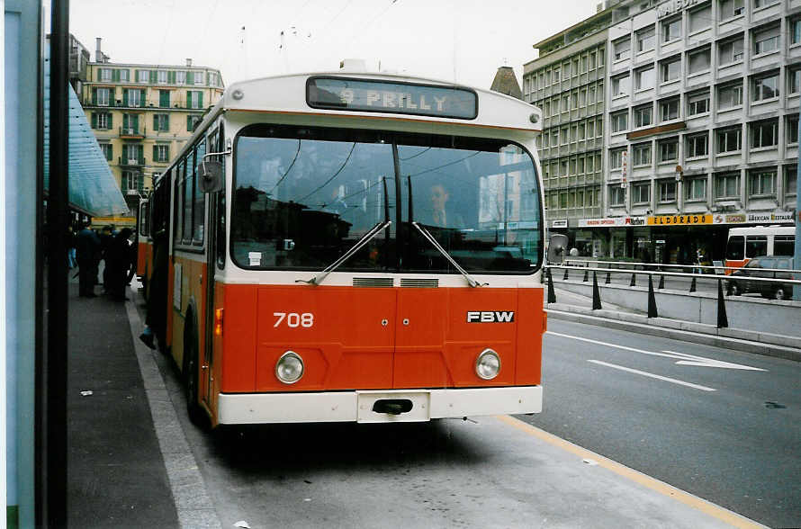 Aus dem Archiv: TL Lausanne - Nr. 712 - FBW/Hess Trolleybus am 15. April 1998 in Lausanne, Place Riponne