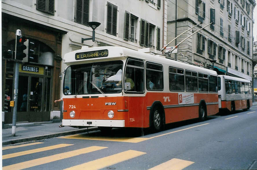 Aus dem Archiv: TL Lausanne - Nr. 724 - FBW/Hess Trolleybus am 22. August 1998 in Lausanne, Rue Neuve