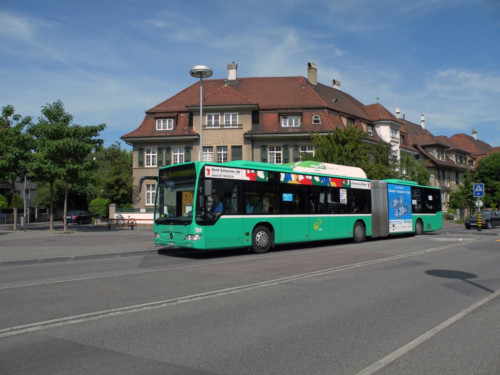 Mercedes Citaro mit der Betriebsnummer 704 auf der Linie 34 am Rütimeyer-Platz in Basel. Die Aufnahme stammt vom 20.05.2011.