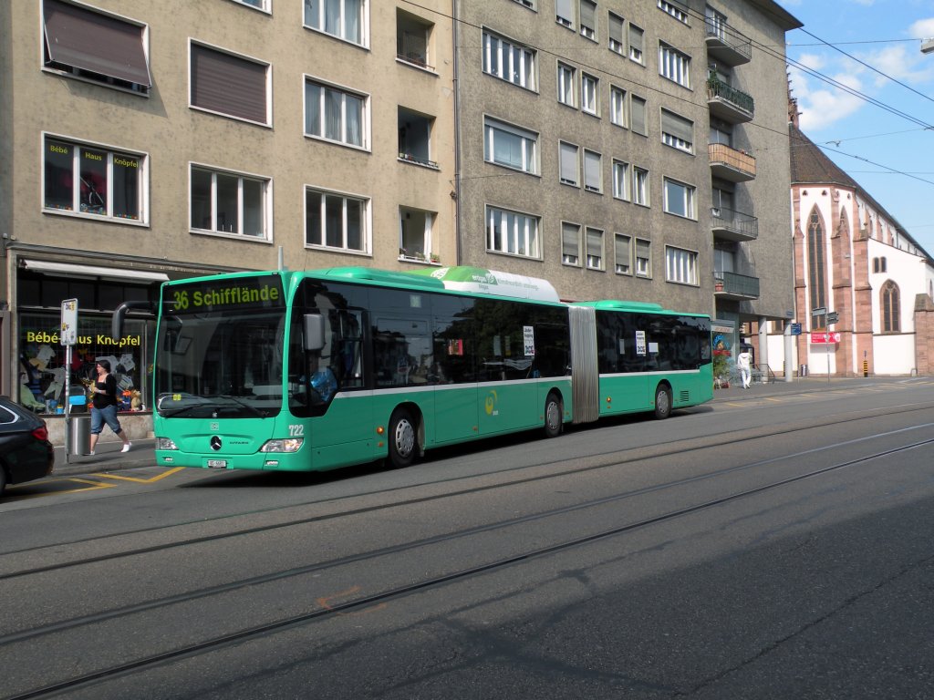 Mercedes Citaro mit der Betriebsnummer 722 auf der Linie 36 an der Haltestelle Universitätsspital in Basel. Die Aufnahme stammt vom 14.05.2011.
