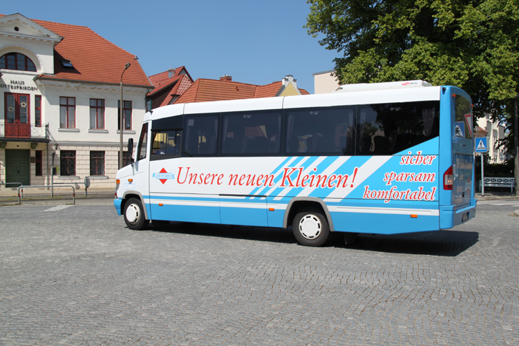 Neuer Küstenbus als Linie 110 von Bad Doberan ZOB nach Kröpelin Markt kurz nach der Abfahrt in Bad Doberan,Stadtmitte.(30.05.2011)