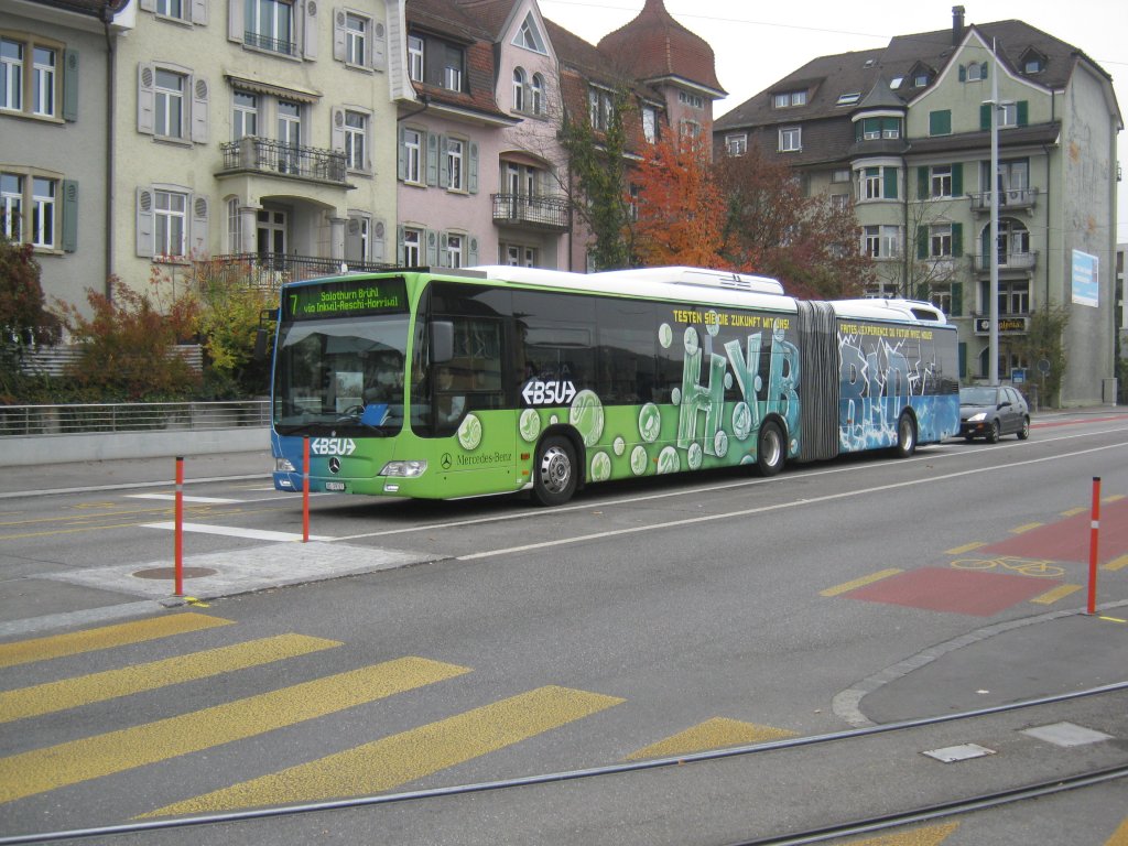 Hybryd Testbus von Mercedes in Solothurn auf der Linie 7 beim HB Solothurn. Dieser Bus wird noch ca. eine Woche beim BSU sein, 09.11.2011.