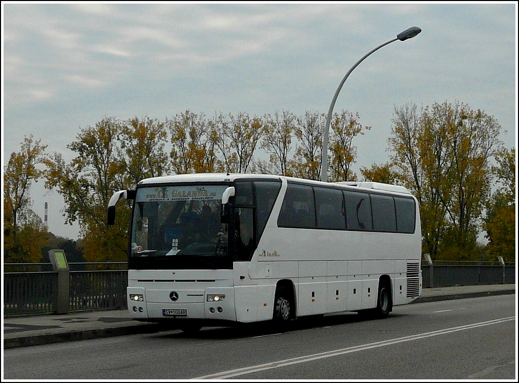 Mercedes Benz Tourismo auf der Europabrücke zwischen Strasbourg und Kehl aufgenommen am 31.10.2011. An dieser Stelle verläuft die Grenze zwischen Deutschland und Frankreich.
