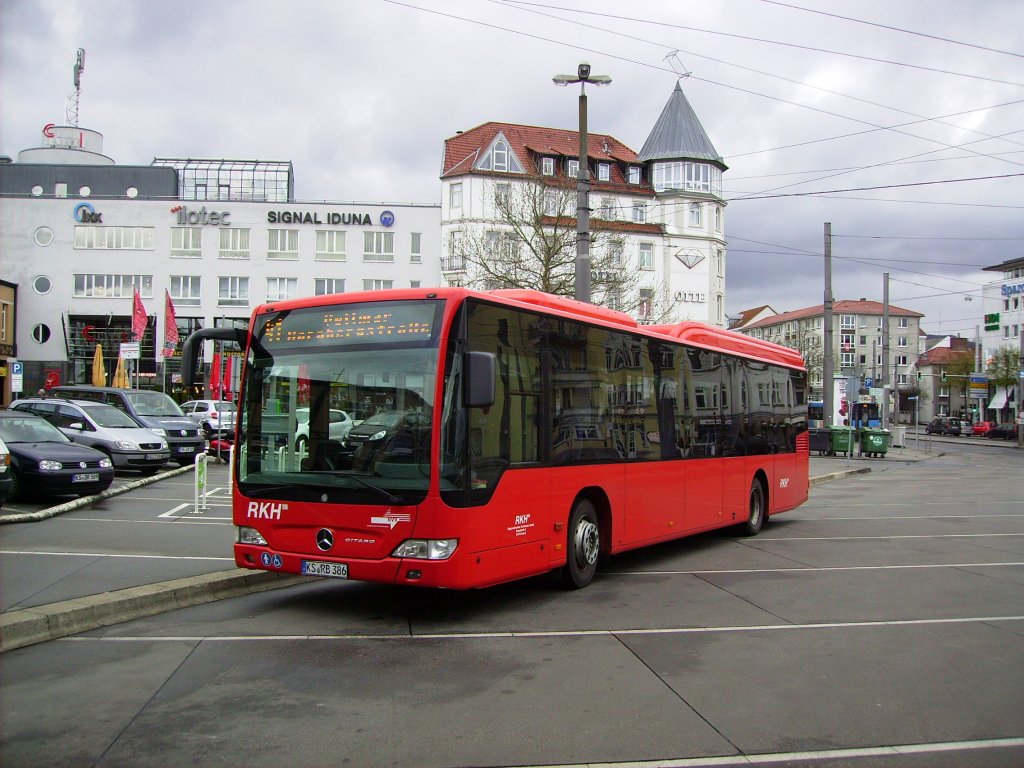 Am 21.04.2012 wartet KS-RB 386 auf dem Vorplatz des Bahnhofs Kassel-Wilhelmshöhe auf seine Weiterfahrt als Linie 41 nach Vellmar.