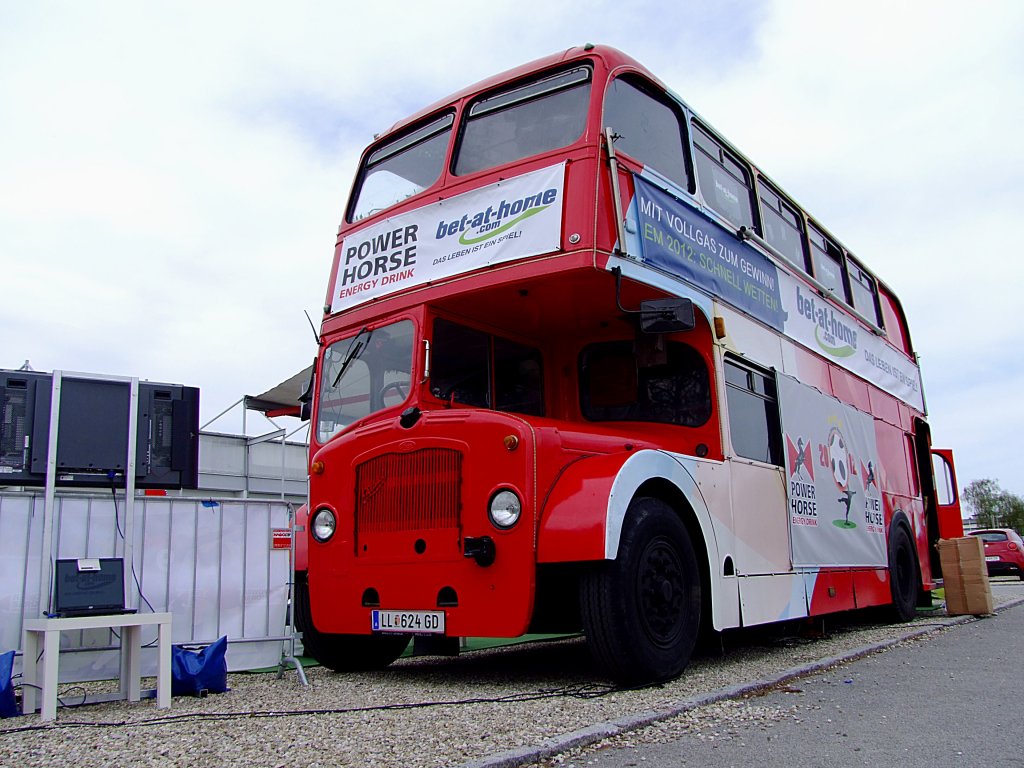 Bristol Lodekka Bj1956; wird anlässlich des Bundesligaspieles SVR-Ried gegen Rapid-Wien Werbemässig aufgerüstet; 120429