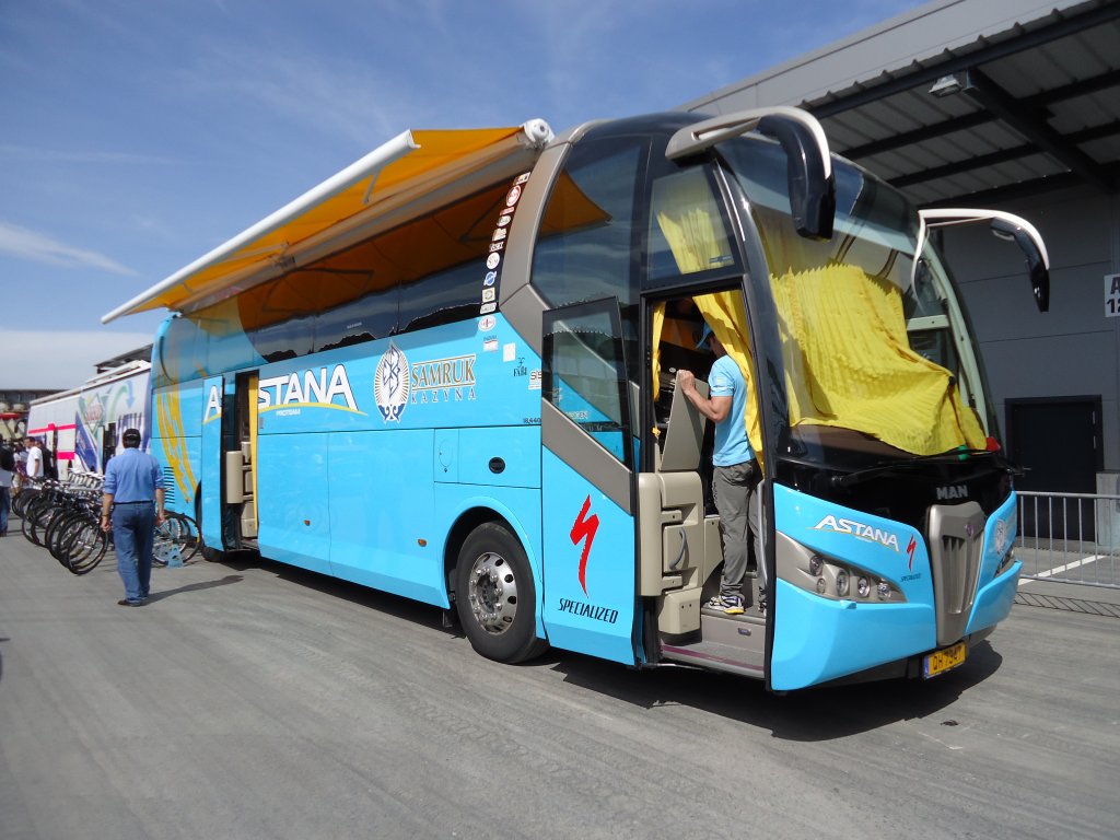 Volvo 9700 de l'équipe Sky Cycling Pro photographié au Tour de Romandie 2012