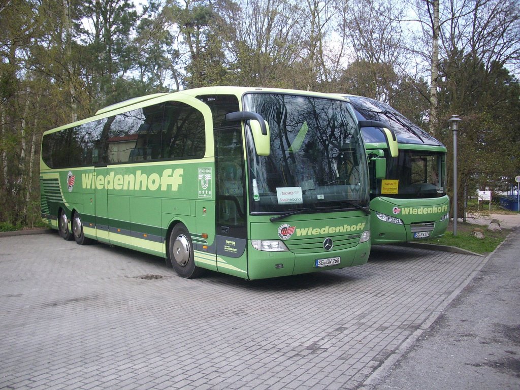 Mercedes Travego und Neoplan Starliner von Wiedenhoff in Binz am 25.04.2012