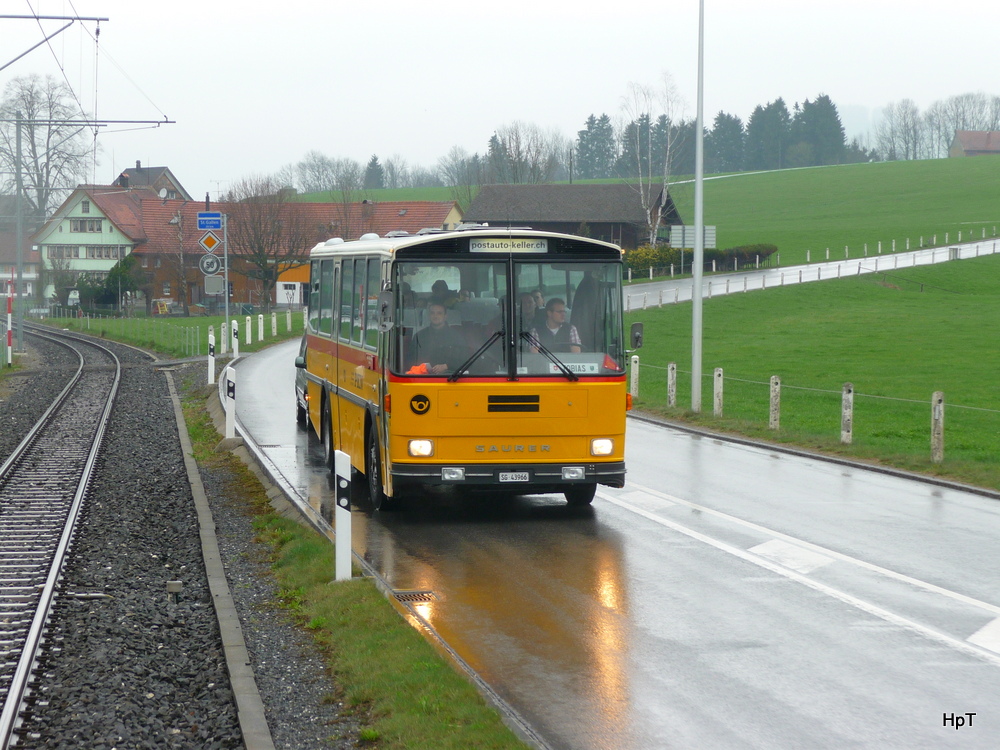 PKN - Saurer SG 43966 auf einer Extrafahrt in Appenzellerland am 15.04.2012 ..Standort des Fotografen in einem Extrazug..