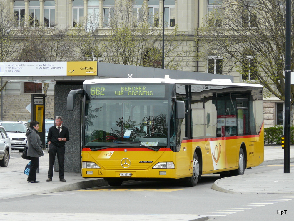 Postauto - Mercedes Citaro VD 146539 unterwegs auf der Linie 662 in Yverdon les Bains am 25.04.2012